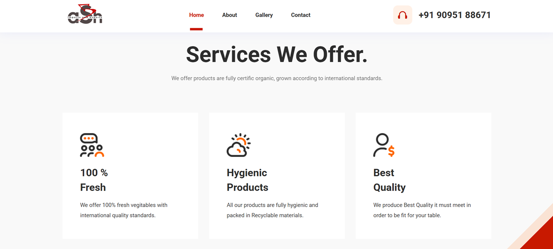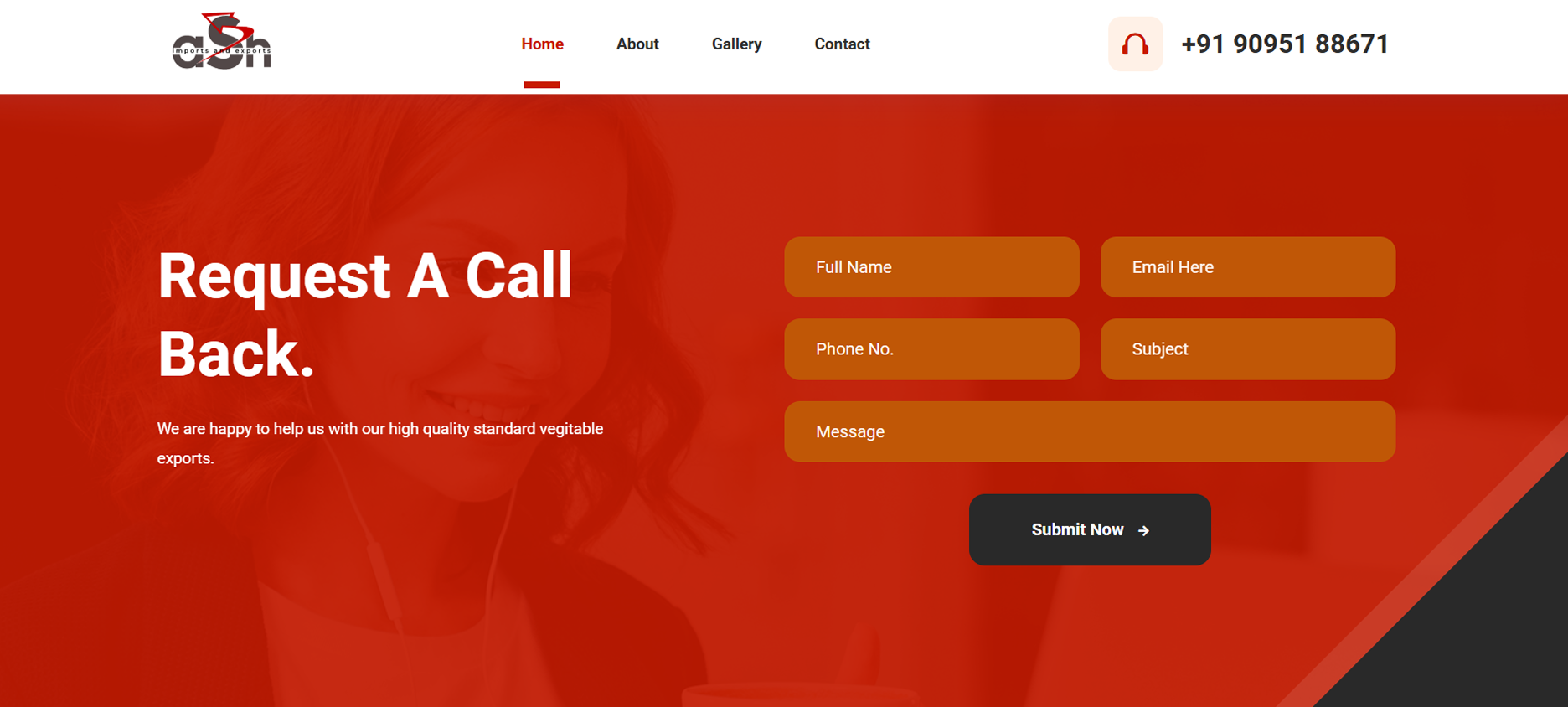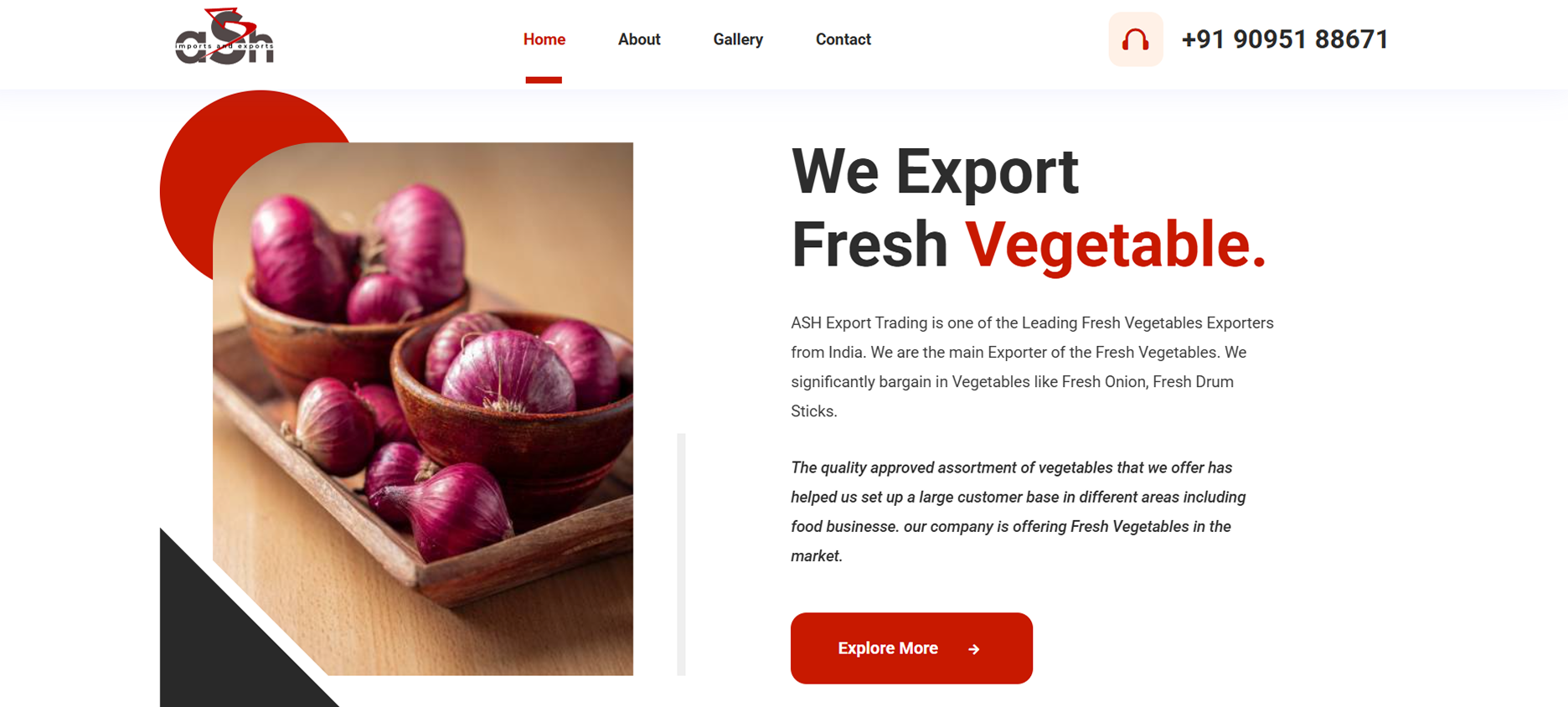 We developed a clean and SEO-optimized profile website for Ash Exports Trading, showcasing their role as leading exporters of fresh vegetables from India.