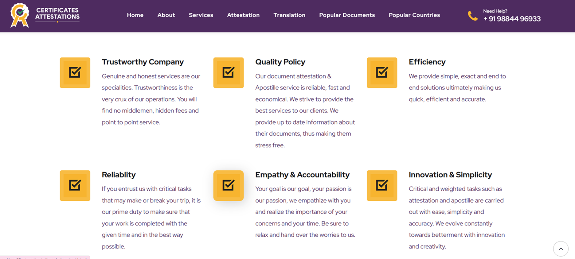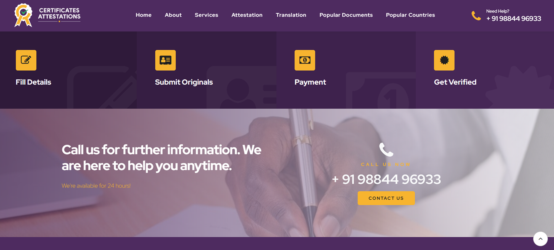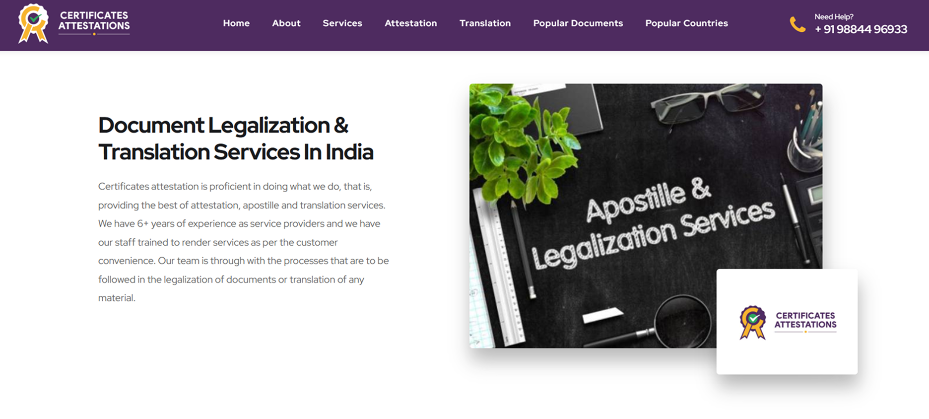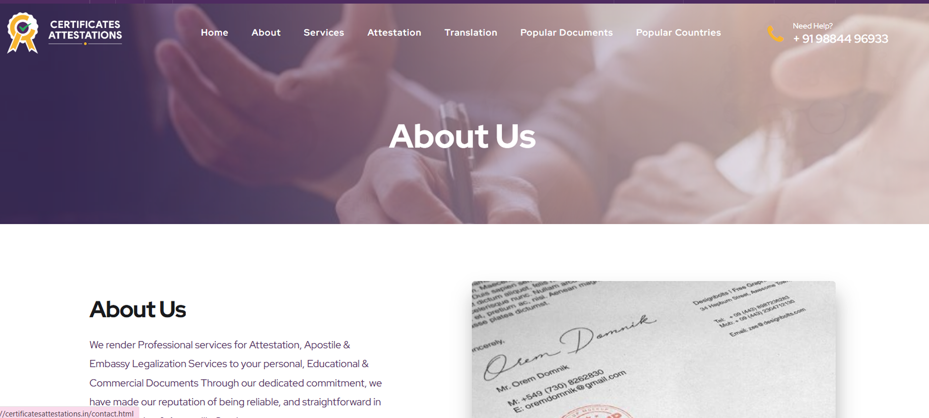 We developed a professional profile website with SEO for Certificates Attestations, highlighting their reliable and customer-focused attestation services.