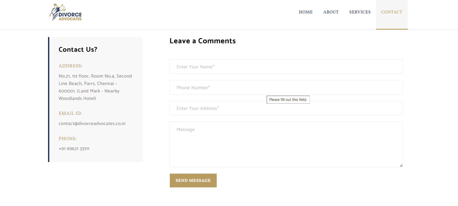 We developed a mobile-responsive profile website for Divorce Advocates, showcasing their expert legal services for divorce and matrimonial cases.