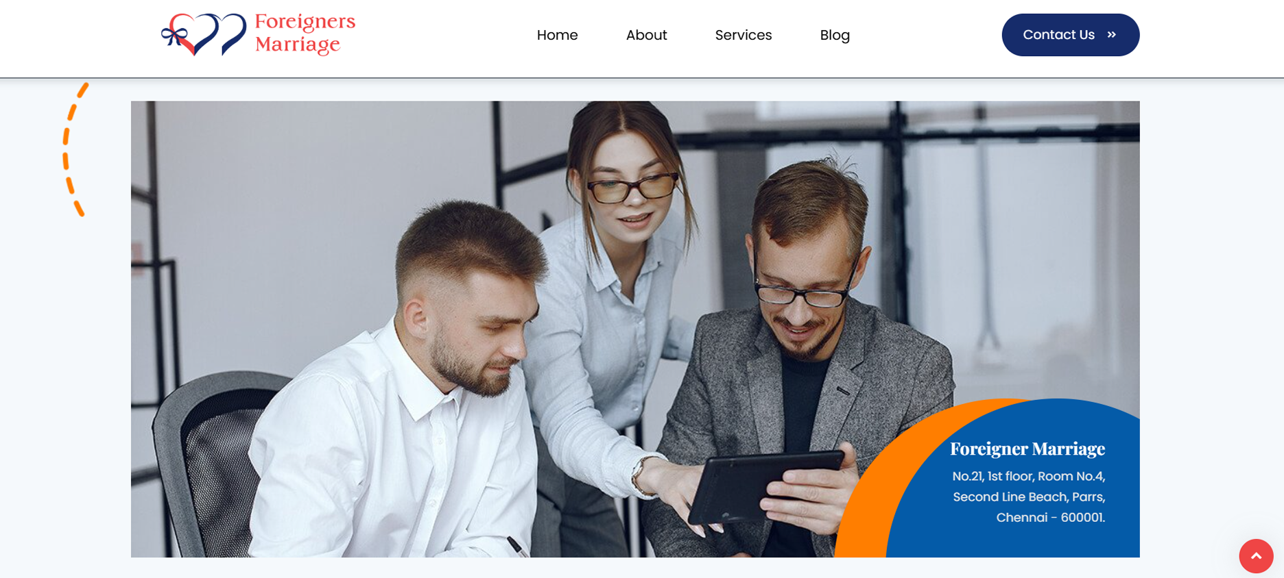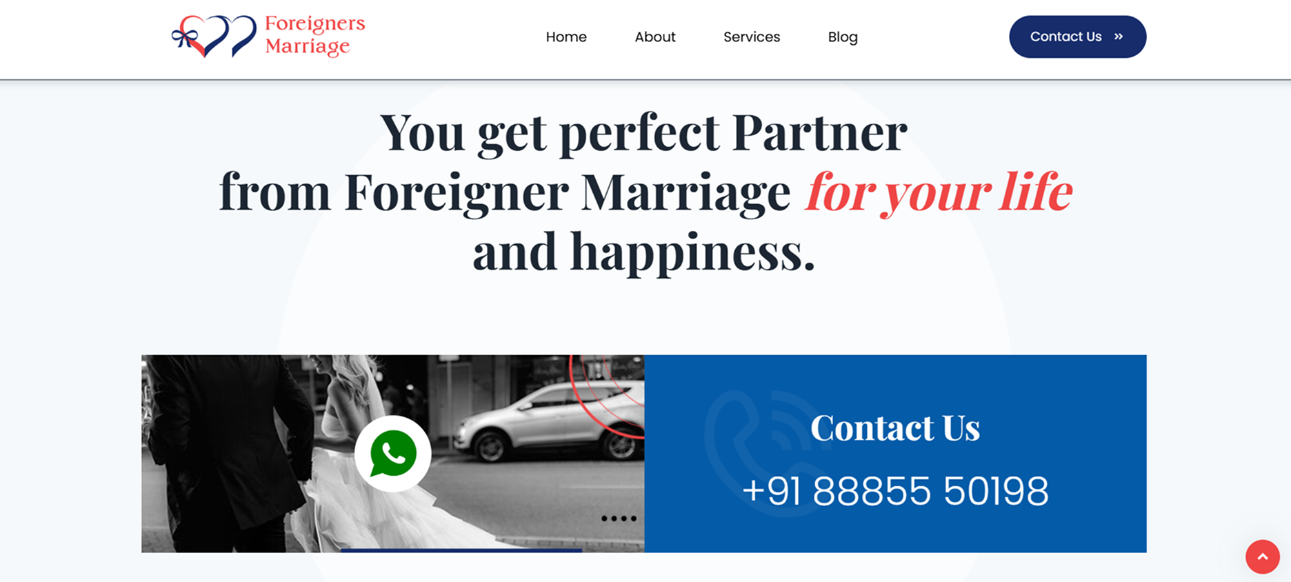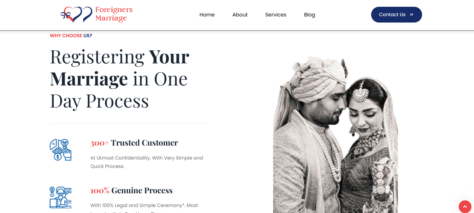We developed a mobile-responsive profile website for Foreigners Marriage services, offering easy marriage registration and legal certification for foreign nationals.